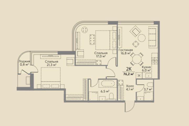 Площадь: 76.2 м2